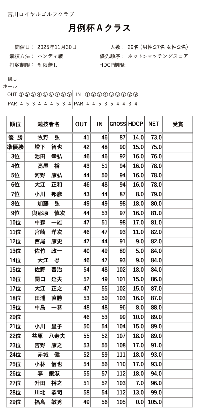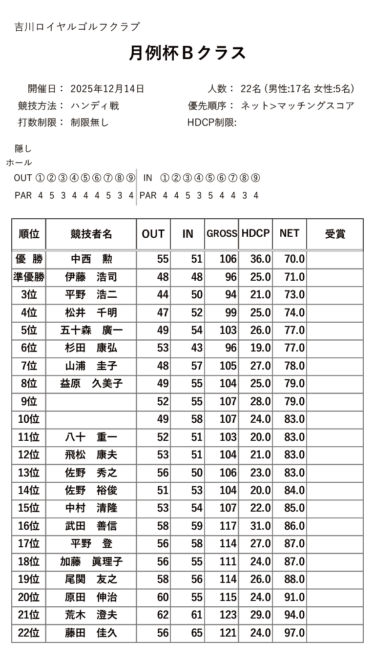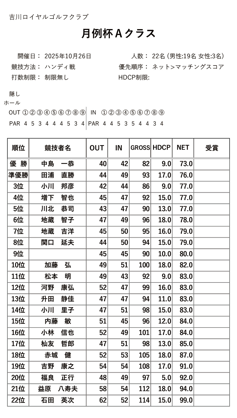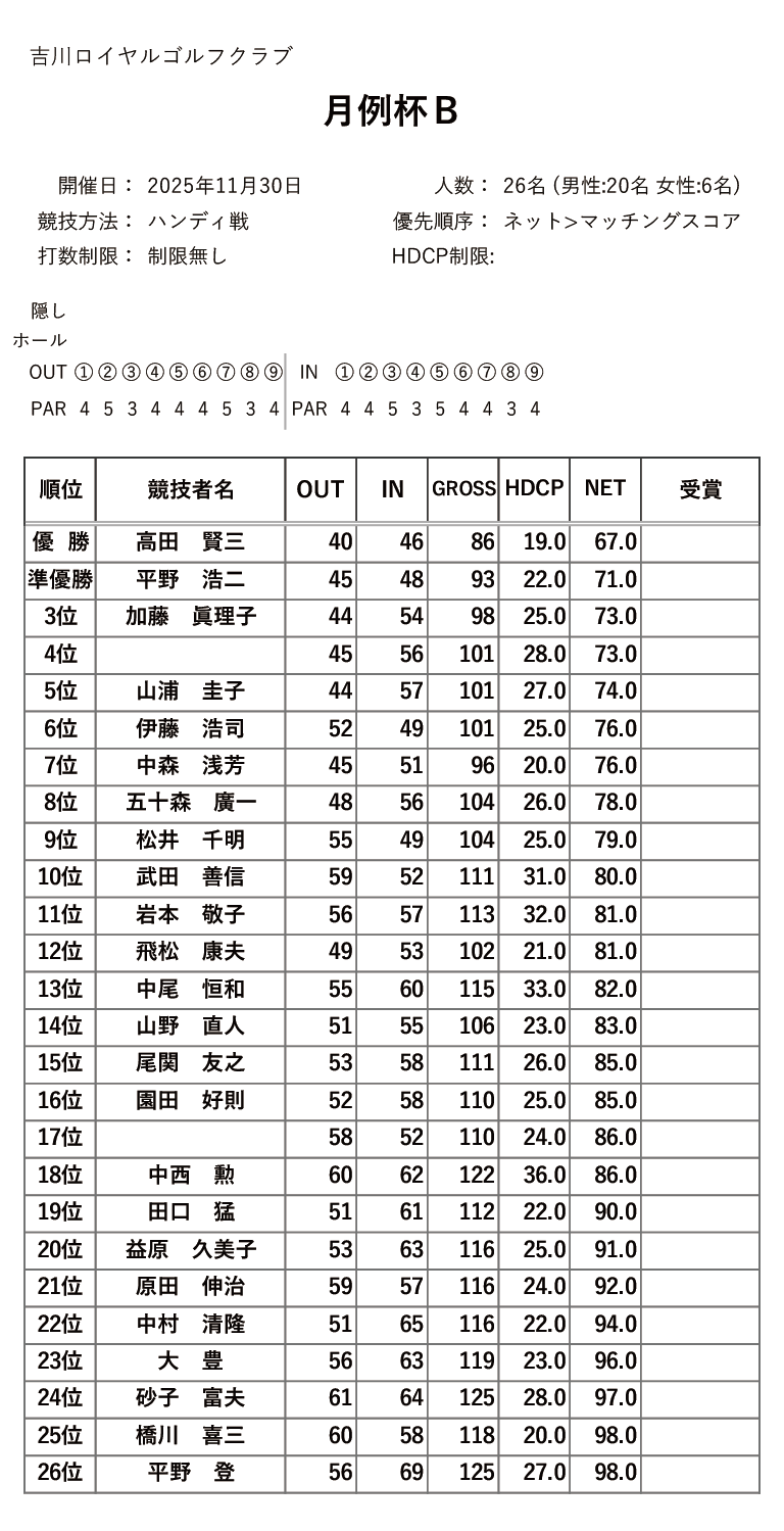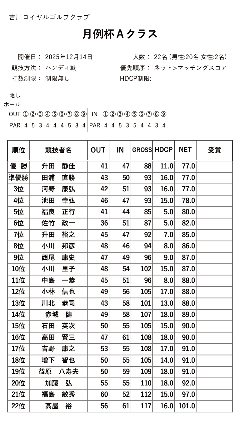 | 18日(木) | シニア&レディース グランドマンスリー | PDF | JPG | |
