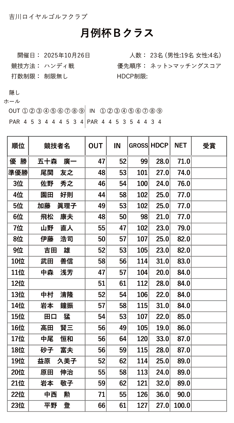 | 23日(日) | Aクラス | PDF | JPG | |