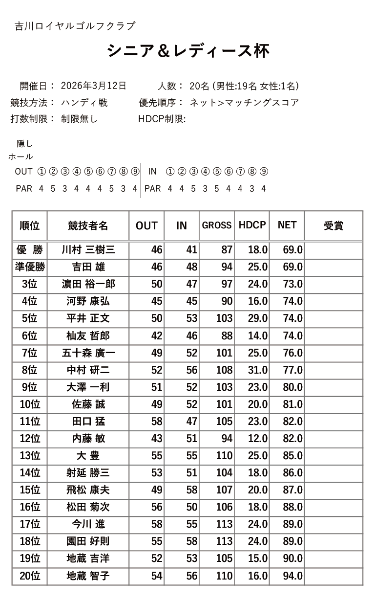 2026年03月 シニア&レディース杯
